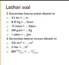Latihan Soalgram 5 Konversikan Besaran Pokok Dibawah Inia 4 2 Dm Mb 8 32 Kg Gram15 Brainly Co Id