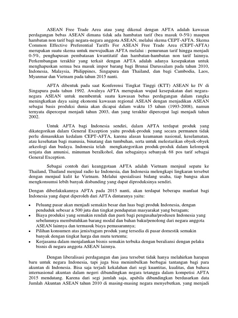 Awalnya AFTA adalah tujuan Kawasan Perdagangan Bebas ASEAN AFTA sebagai bentuk kesepakatan negara-negara ASEAN untuk mengembangkan kawasan perdagangan bebas. Posting pada Ekonomi Umum Ditag aec afta didirikan pada tahun anggota mea anggota mea masyarakat ekonomi asean apa harapan mea apa manfaat dari dibukanya perdagangan bebas apa manfaat dari mea bagi indonesia dan negara asean lainnya apa pengaruh mea bagi asean apa pengaruh mea terhadap indonesia apa tujuan mea apakah mea masyarakat. AFTA dibentuk pada pelaksanaan KTT Konferensi Tingkat Tinggi pada tanggal 28 Januari tahun 1992 di Singapura. Untuk meningkatkan daya saing ekonomi daerah.