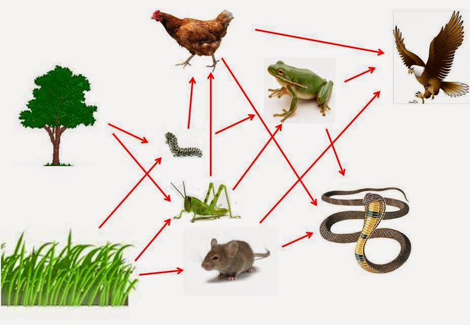 Baik pada rantai makanan ataupun dengan jaring-jaring makanan yang diilustrasikan dengan tanda panah dengan menunjukkan arah aliran energi.