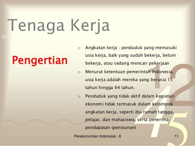 Menurut Undang-Undang Tenaga Kerja No. Adalah angkatan kerja yang mempunyai ciri-ciri. Pengertian tenaga kerja adalah jumlah keseluruhan penduduk didalam tingkat usia kerja yang berusia 15 tahun atau lebih dimana mereka memiliki potensi yang dapat memproduksi barang dan jasa. Posisi bekerja tetapi ada pencacahan menganggur dan berupay untuk memperoleh pekerjaan.