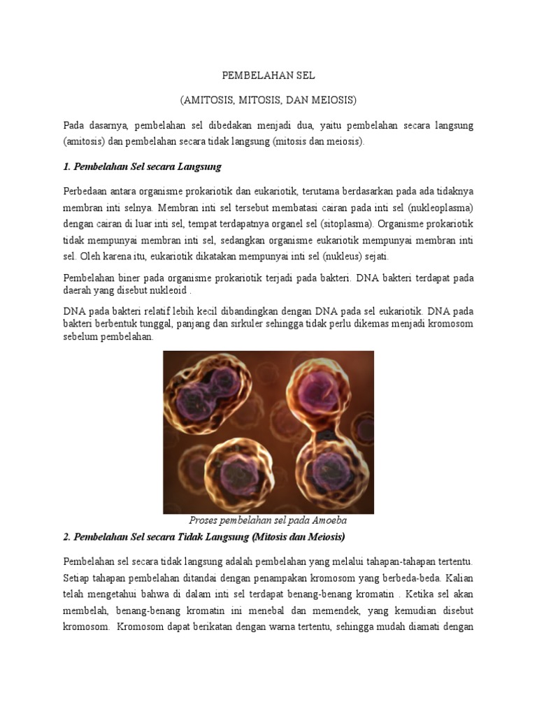 Apakah emang ada pembelahan seperti itu. Dalam pembelahan mitosis ini satu sel membelah menjadi dua sel yang sama persis. Pembelahan sel dibagi menjadi tiga jenis yaitu amitosis mitosis dan meiosis. Pembelahan sel adalah peristiwa dimana sebuah sel membelah menjadi dua atau lebih sel baru.