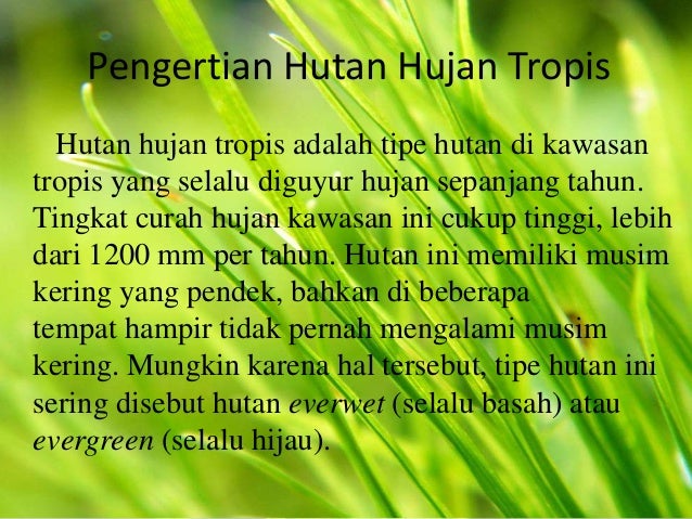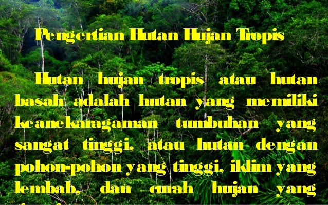 Pengertian Hutan Hujan Tropis Hutan Hujan Tropis Atau Yang Juga Dikenal Sebagai Hutan Basah Biasanya Terdapat Di Daerah Tropika Daer Hutan Hujan Tropis Hutan