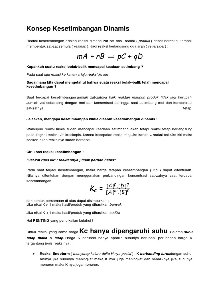 Kesetimbangan Kimia Docx 1 Pengertian Kimia Sistem Kesetimbangan Kesetimbangan Kimia Merupakan Proses Yang Dapat Berlangsung Dua Arah Artinya Proses Course Hero