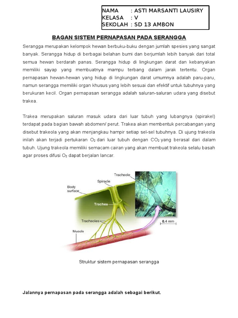 Bagan Cara Kerja Organ Pernapasan Pada Serangga