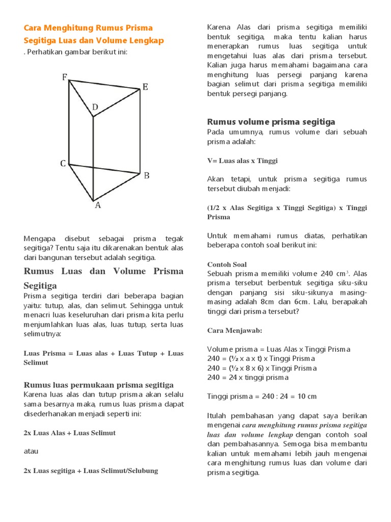 Cara Menghitung Volume Prisma Segi Empat Dan Segitiga