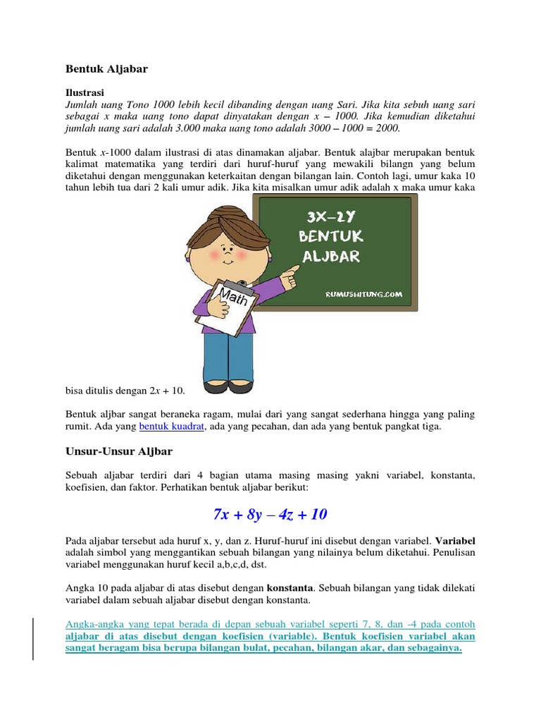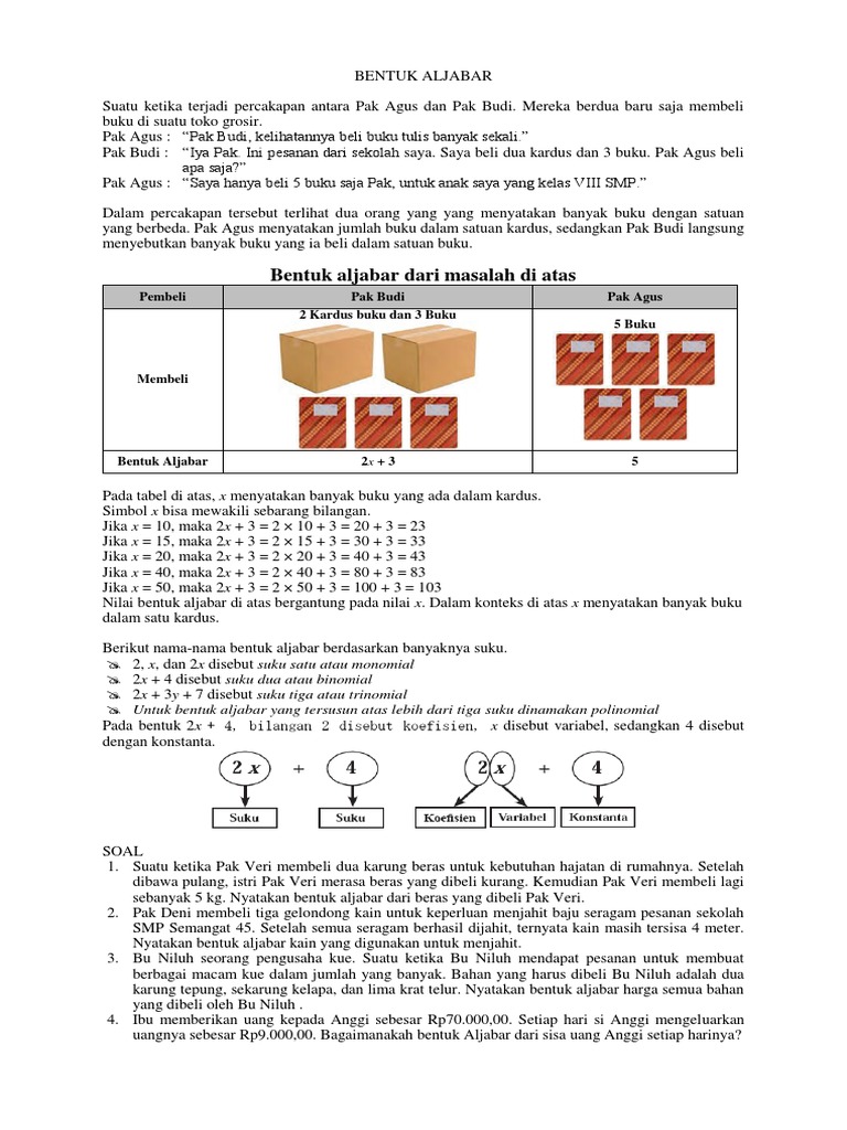 Doc Bahan Ajar Bentuk Aljabar Kelas Viii Semester 1 Abdul Rais Academia Edu