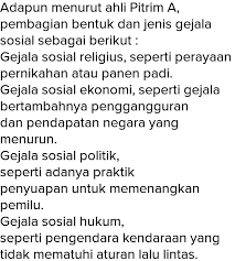 Sebagaimana definisi sosiologi menurut Pitirim A. Semoga melalaui tulisan ini bisa memberikan wawasan dan meningkatkan ilmu pengetahuan bagi segenap pembaca yang pada saat ini membutuhkan materi. Ekonomi Tingkat pendapatan berbeda yang dimiliki oleh tiap individu dapat mengakibatkan gejala sosial dalam masyarakat. Pengertian Gejala Sosial dan Contohnya Gejala sosial merupakan masalah sosial yang mempengaruhi dan di pengaruhi oleh perilaku manusia di dalam lingkungan kehidupannya.