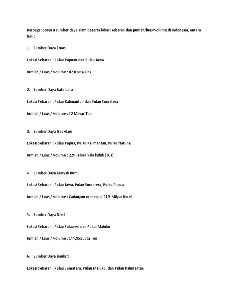 Potensi Sumber Daya Alam Indonesia Brainly Co Id