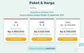 Dengan banyaknya kelebihan yang disediakan kamu hanya perlu membayar Rp225000 untuk berlangganan selama 1 bulan. Paket Ruang Guru mulai Rp250000-Rp300000 perbulan. 250000 T idak ada diskon Paket kelas 10 11 12 SMA 3 bulan Rp. Kerja 4-5 tahun dah boleh jadi jutawan.